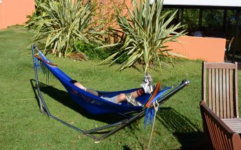 日差しは強いですが気持ちいい。ハンモックは全て満員でした