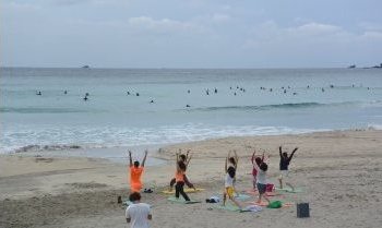 ビーチヨガをやっておりました。朝は涼しいので気持ちよさそう