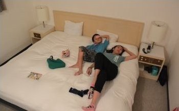 普段、寝袋などの外泊が多いので、ベッドがとても気に入ったようだ