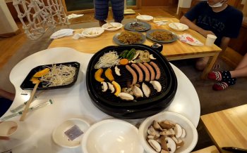 今回は大雨だったので、ホットプレートを持ち込んで、室内バーベキューとなりました